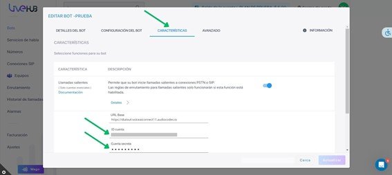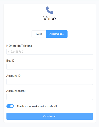 Si tu bot puede hacer llamadas salientes, necesitas proporcionar más información al conectar tu bot de AudioCodes a Topchat.bot.