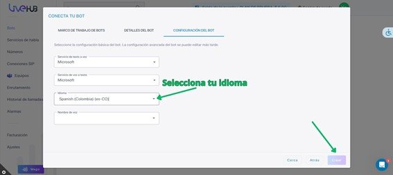 1. Servicio Conectado: Selecciona tu bot.