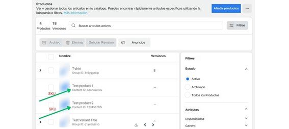 4. Vincula tus productos a los productos del Catálogo: Importamos automáticamente todos los productos del catálogo de Facebook cuando conectas tu bot al catálogo, pero Facebook no permite que las aplicaciones obtengan los SKUs de productos desde su API. Todas las comunicaciones con WhatsApp Commerce se realizan a través del SKU (ID de contenido en el Catálogo de Facebook). Deberás copiar manualmente el ID de contenido en el Catálogo de Facebook y establecerlo como SKU en Topchat.bot .