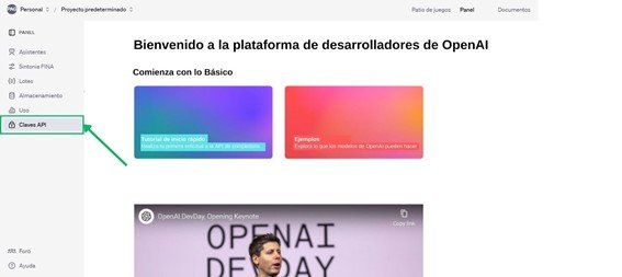 Para conectar tu propia clave API de OpenAI, ve a https://platform.openai.com/ e inicia sesión con tu cuenta.