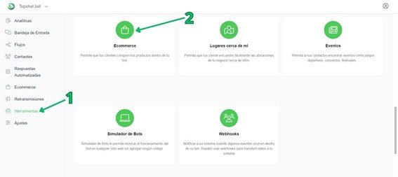 Ve a Herramientas > E-commerce > Ajustes > Pago.