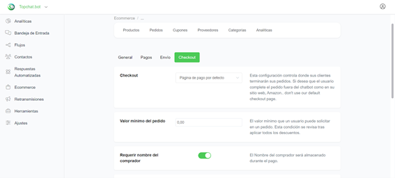 Y así es como se ven las configuraciones de pago en la sección de comercio electrónico.