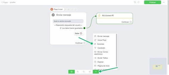 Haz clic dentro del flujo “Acción #1” y procede según lo indicado en la imagen a continuación.