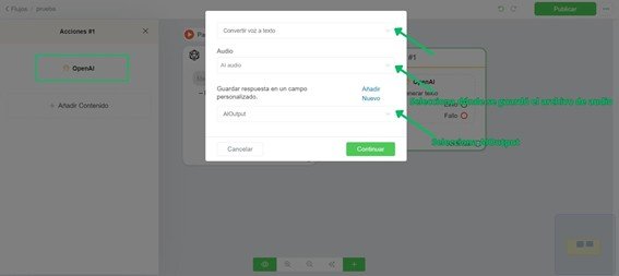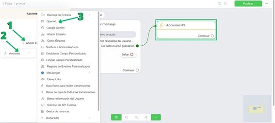 Después de configurar las acciones para OpenAI, procede como se muestra a continuación:
