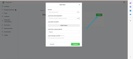 Topchat.bot ha incluido un desencadenante preconfigurado que permite al usuario detener la automatización del bot y hablar con un agente humano. Esta función ya está activa en todas las cuentas.