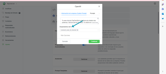 Después de crear tu Disparador de AI, necesitas adjuntarlo a la acción de OpenAI o adjuntarlo a la Configuración de OpenAI.