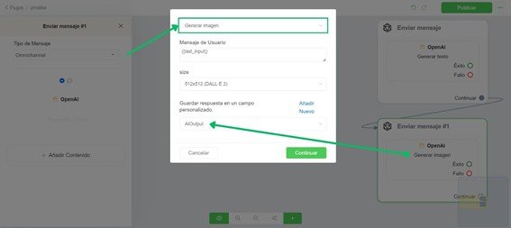 En el constructor de flujo, ve a Acciones > OpenAI > Generar Imagen.
