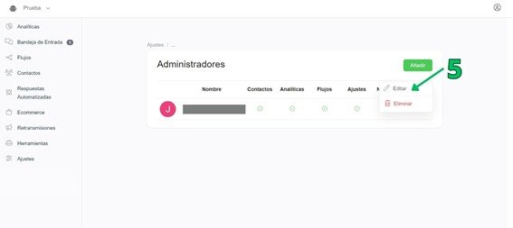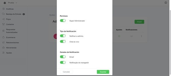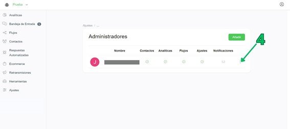 Ve a Menú > Ajustes > Administradores > Gestionar > haz clic en las tres líneas punteadas > Editar > Notificaciones