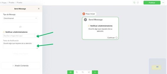 Paso 3: Completa el nombre del flujo, selecciona/deselecciona a los administradores que van a recibir una notificación y coloca la descripción de lo que trata esta notificación.